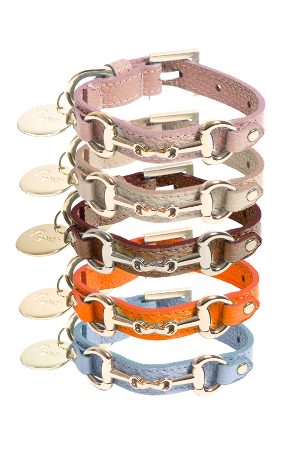 Un accessorio che non passa inosservato: questo collare in pregiata pelle, rifinito artigianalmente e impreziosito da un elegante morsetto dorato, è il dettaglio perfetto per i cani più chic.