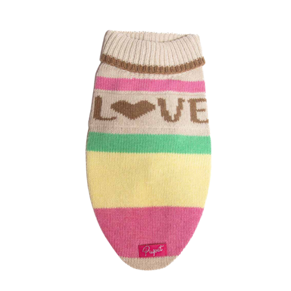 La base beige è impreziosita da righe multicolor e dalla scritta “LOVE” ricamata sul dorso, per uno stile elegante e romantico.